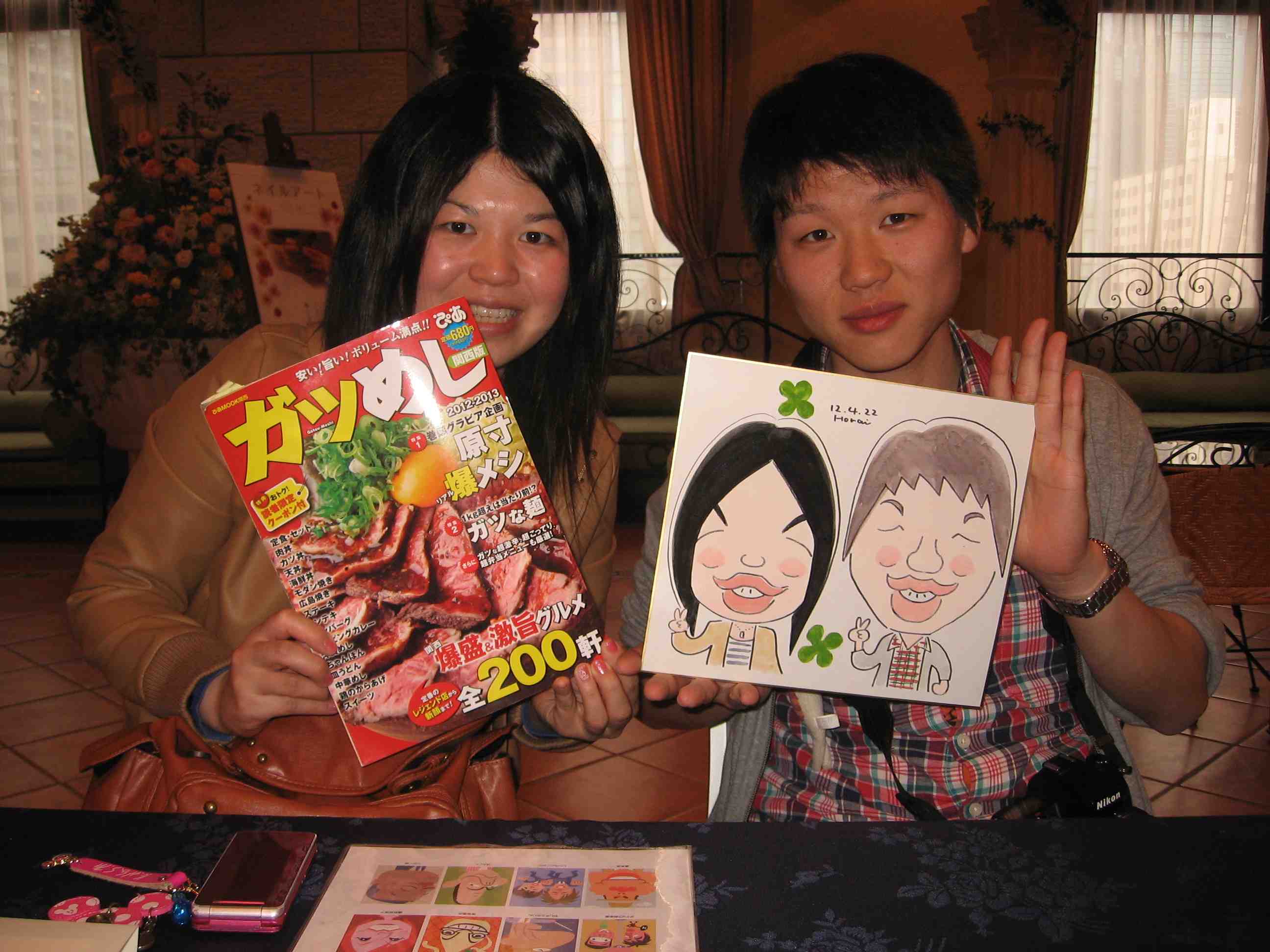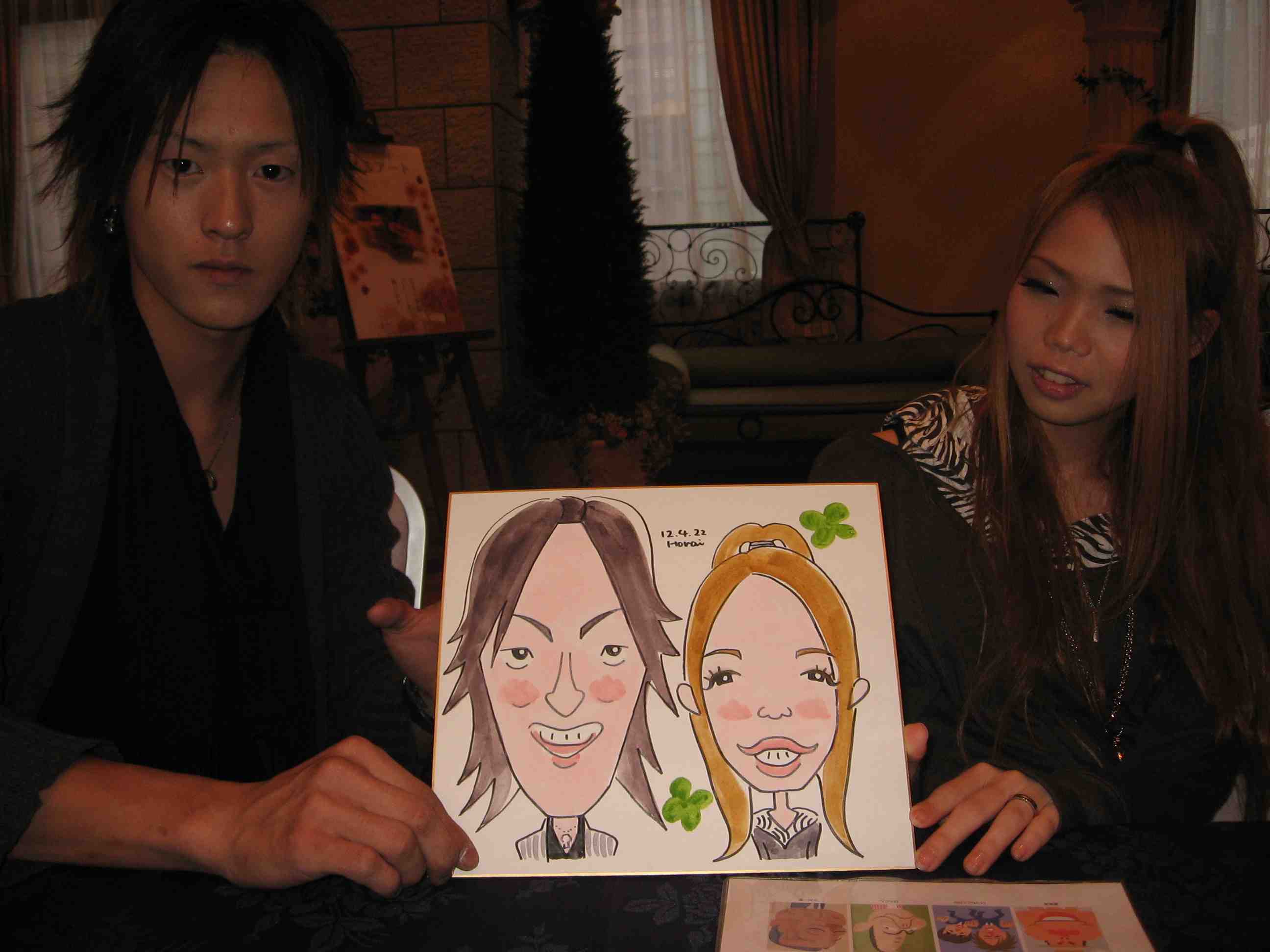 似顔絵を目当てに来てくれたというお二人!彼女はちょっと似せるのに苦労してしまいました・・・彼は楽勝