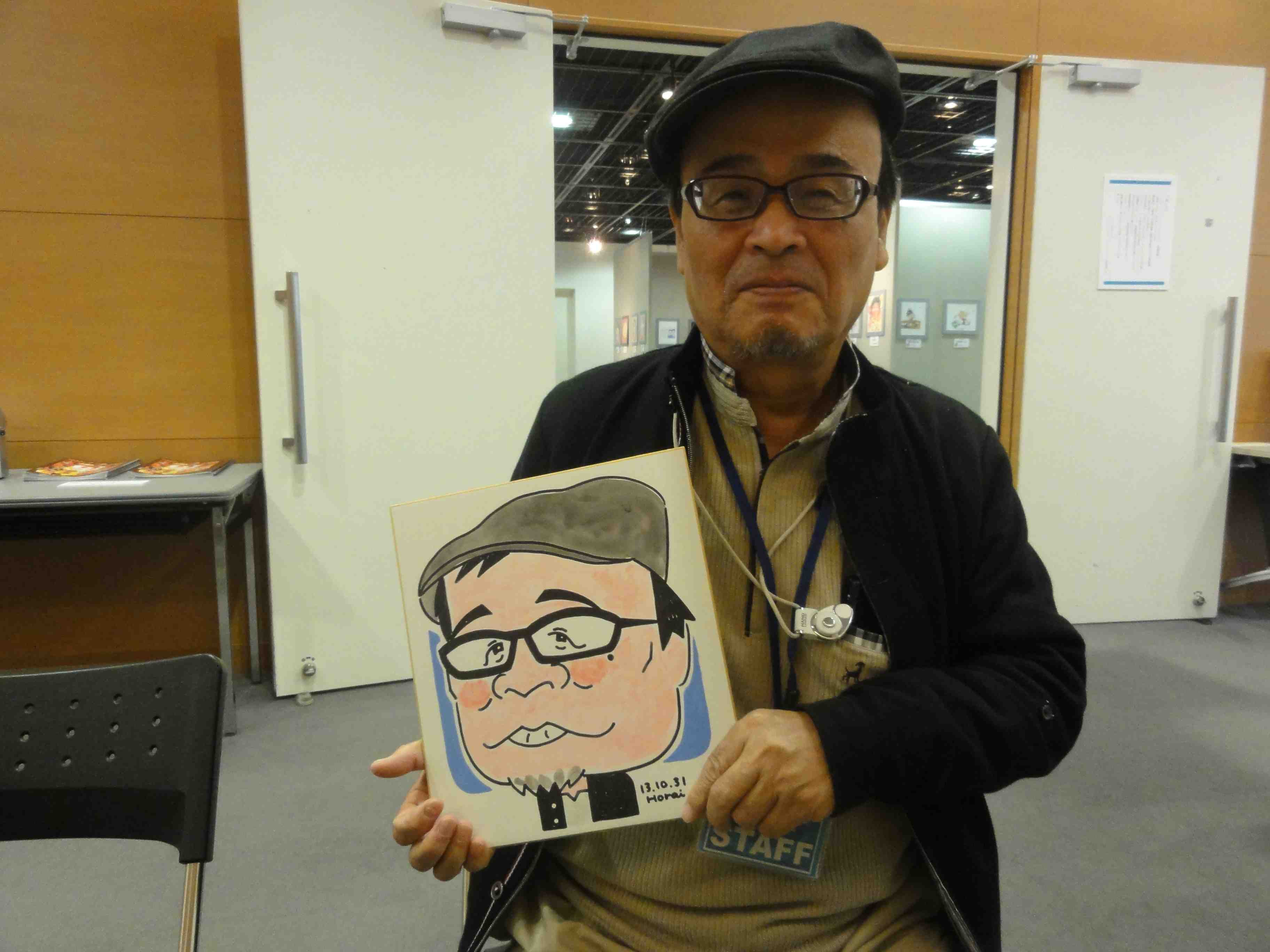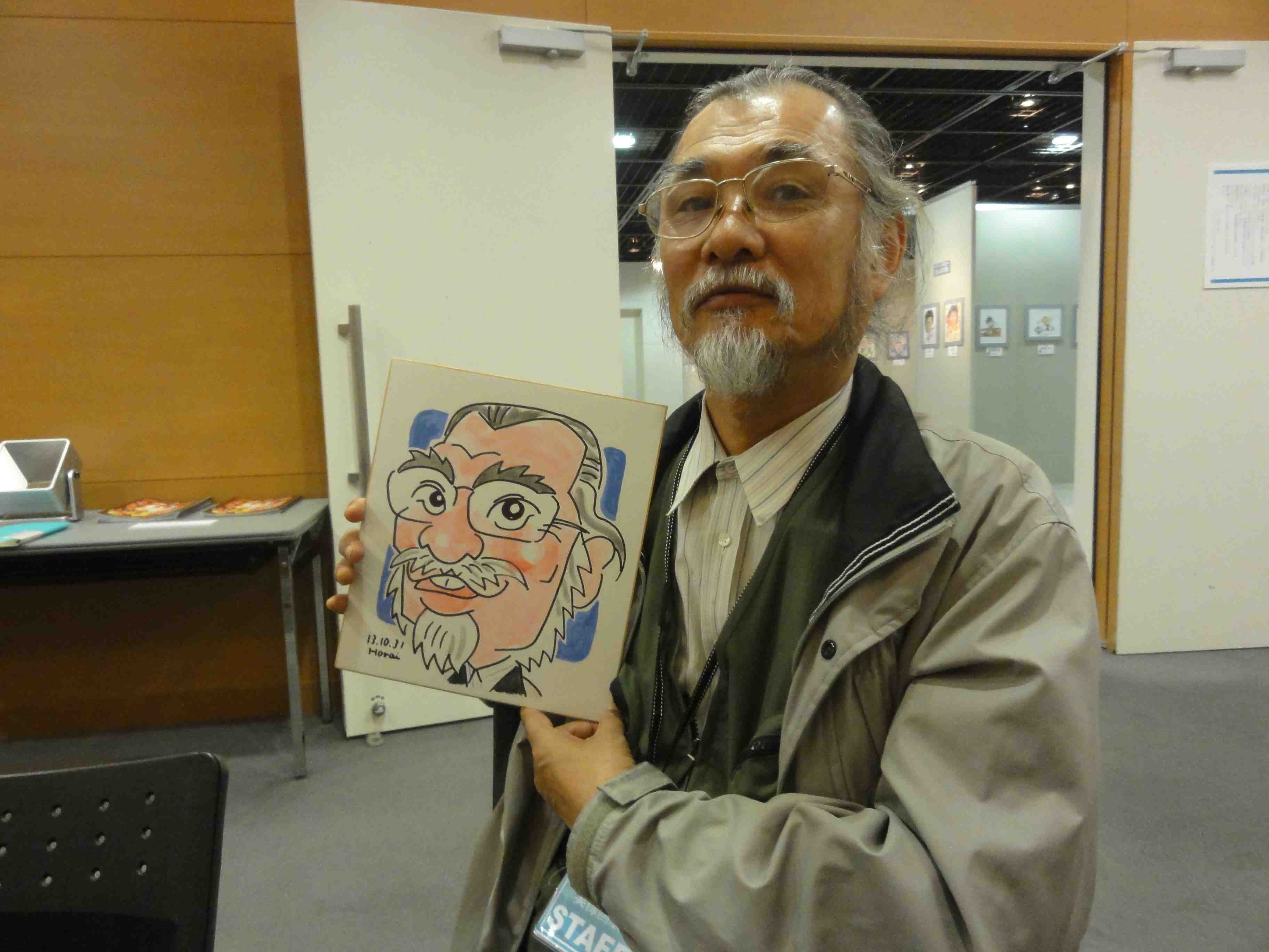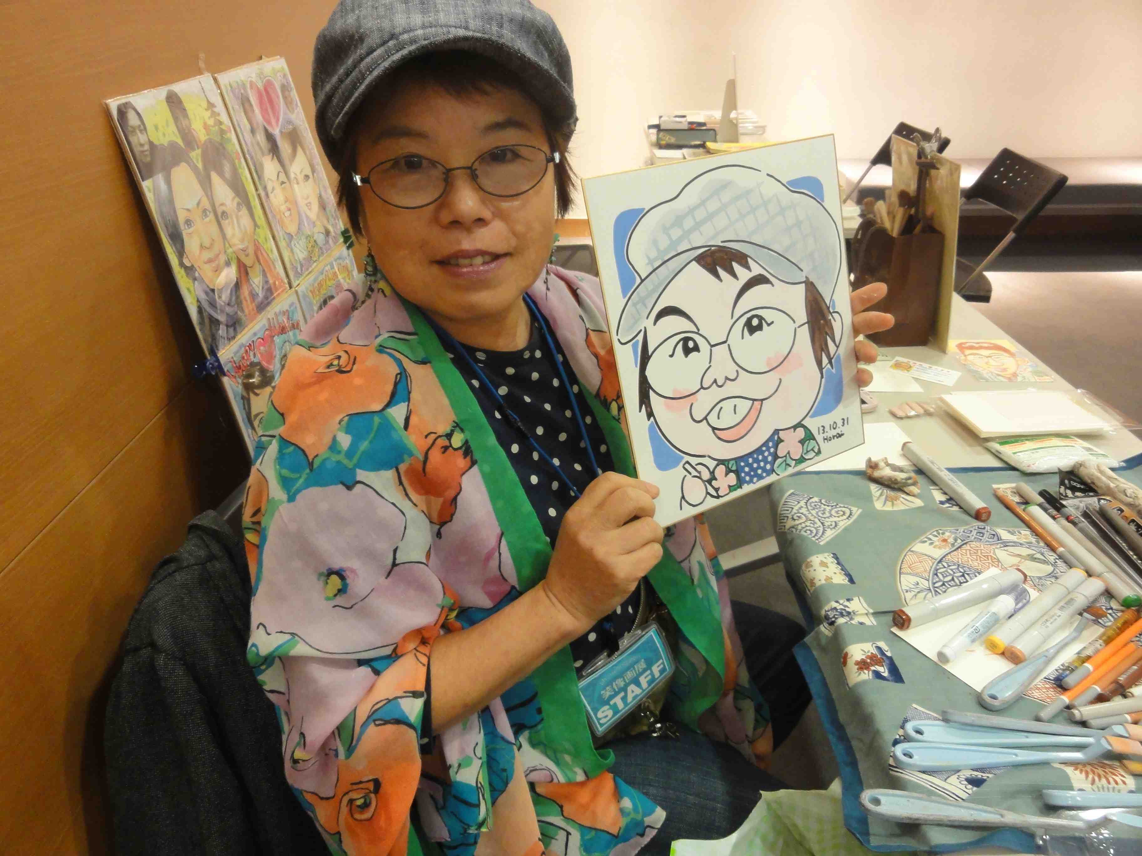 似顔絵仲間のリカさんです。京都を拠点に活動されています 近所で事務機会社を経営されているという男性 漫画が本職の山口さん。いしいひさいち氏について熱く語っておられました