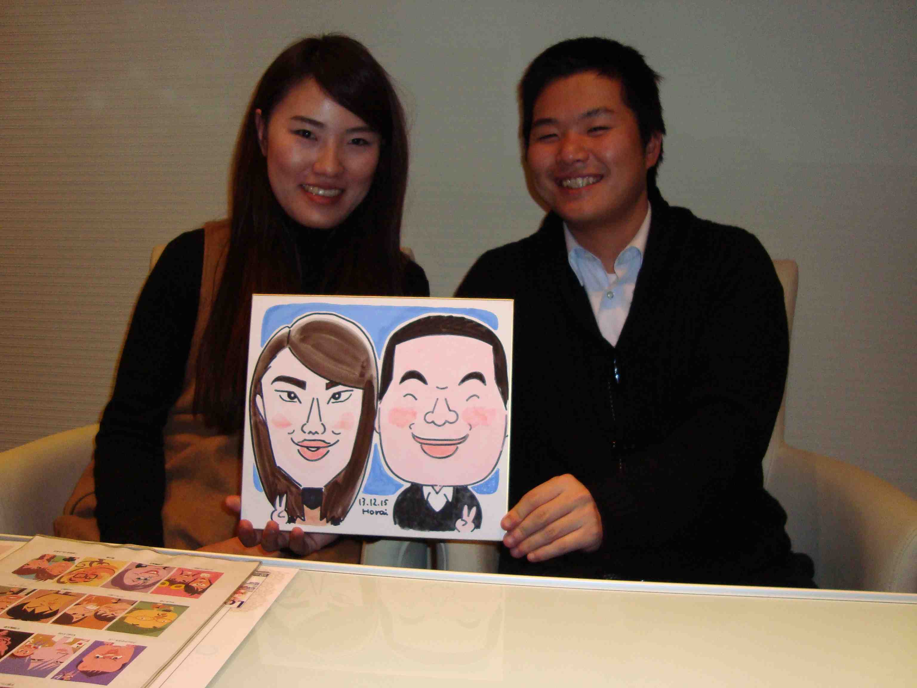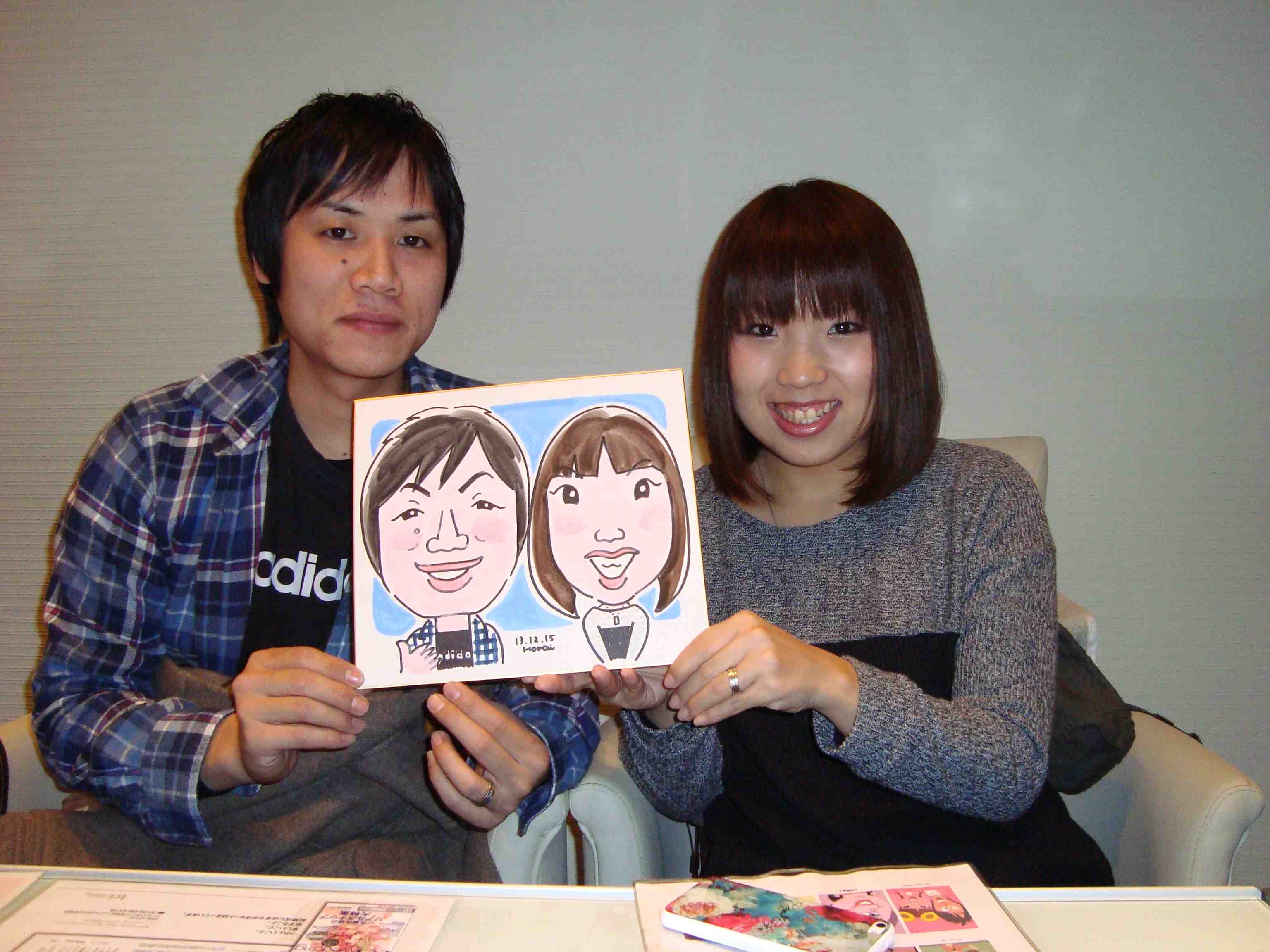 彼が全く怒らない人なのでけんかにならないそうです 彼は電車の運転士で、いろいろ楽しい話が聞けました 寒さがピークになってきました。今週来週のブライダルフェアで今年の出張も終了です。今日は2組描かせていただきました。
