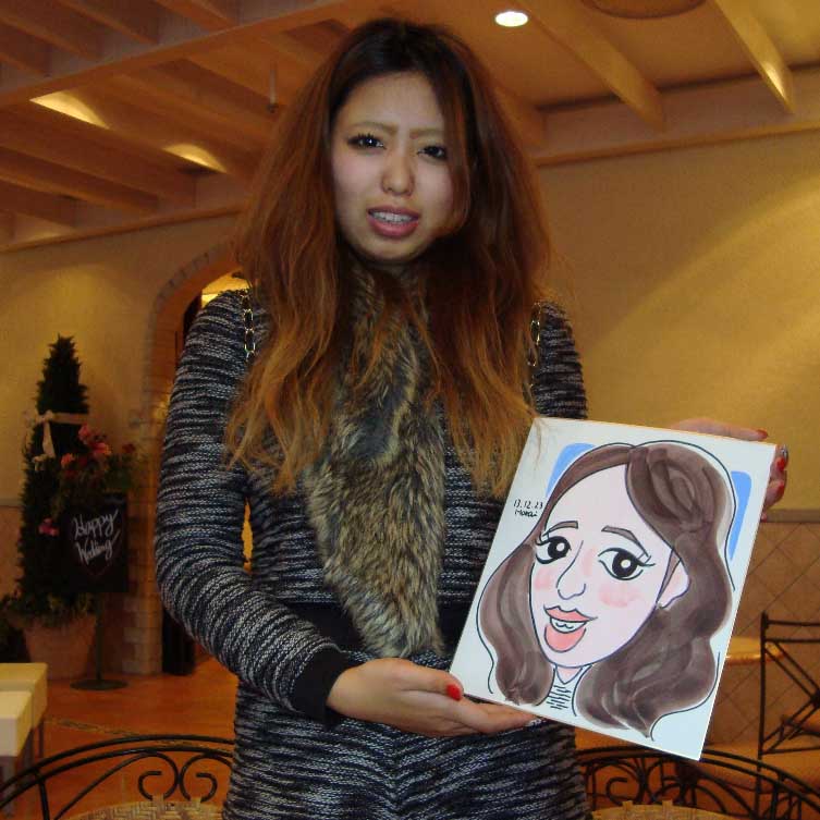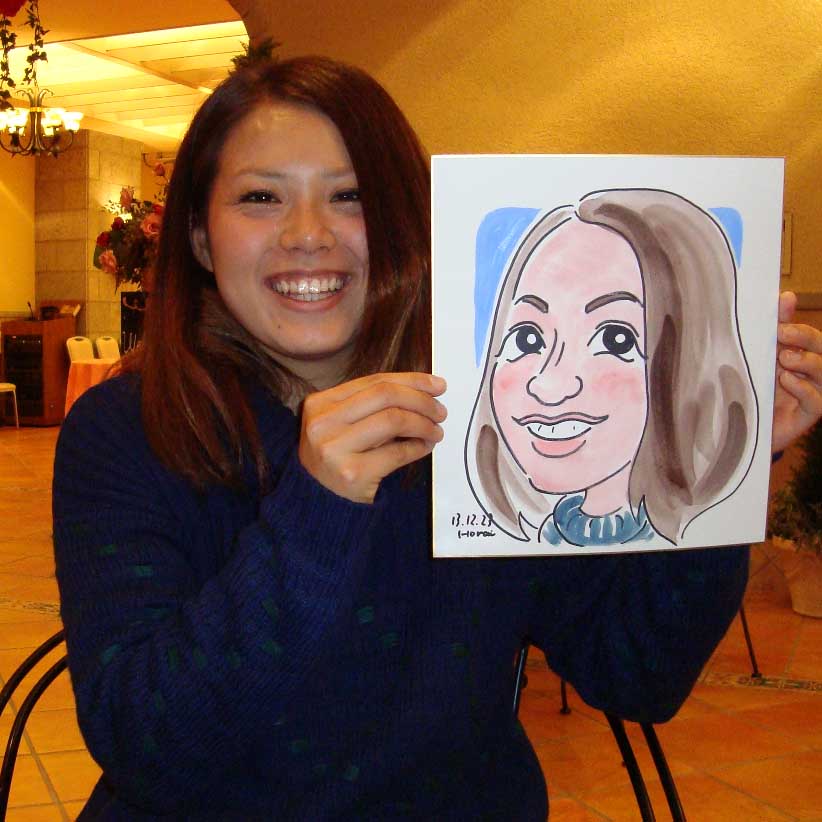 ご家族大勢で来られましたが、彼はお仕事で欠席 ソフトボールでは遊撃で活躍とのことで少し顔を日焼けさせてます 2日連続でグラン・アーモ・タマヒメでのブライダル遊園地です。今日は似顔絵、占い、陶器の絵付けという布陣でした。これで年内の出張は終了。まだ自分の年賀状が描けてないので何とか今週中にかたづけたいです。