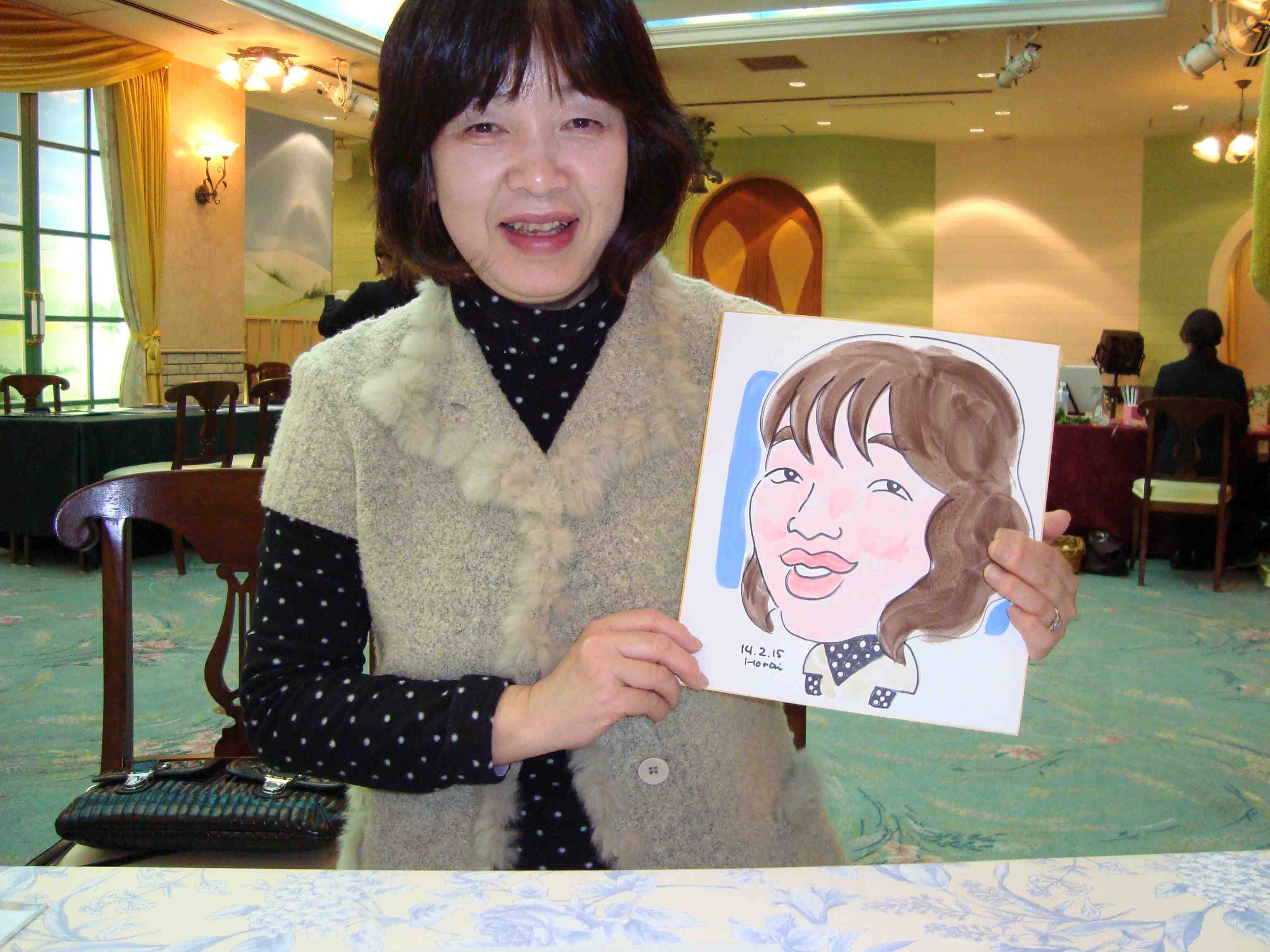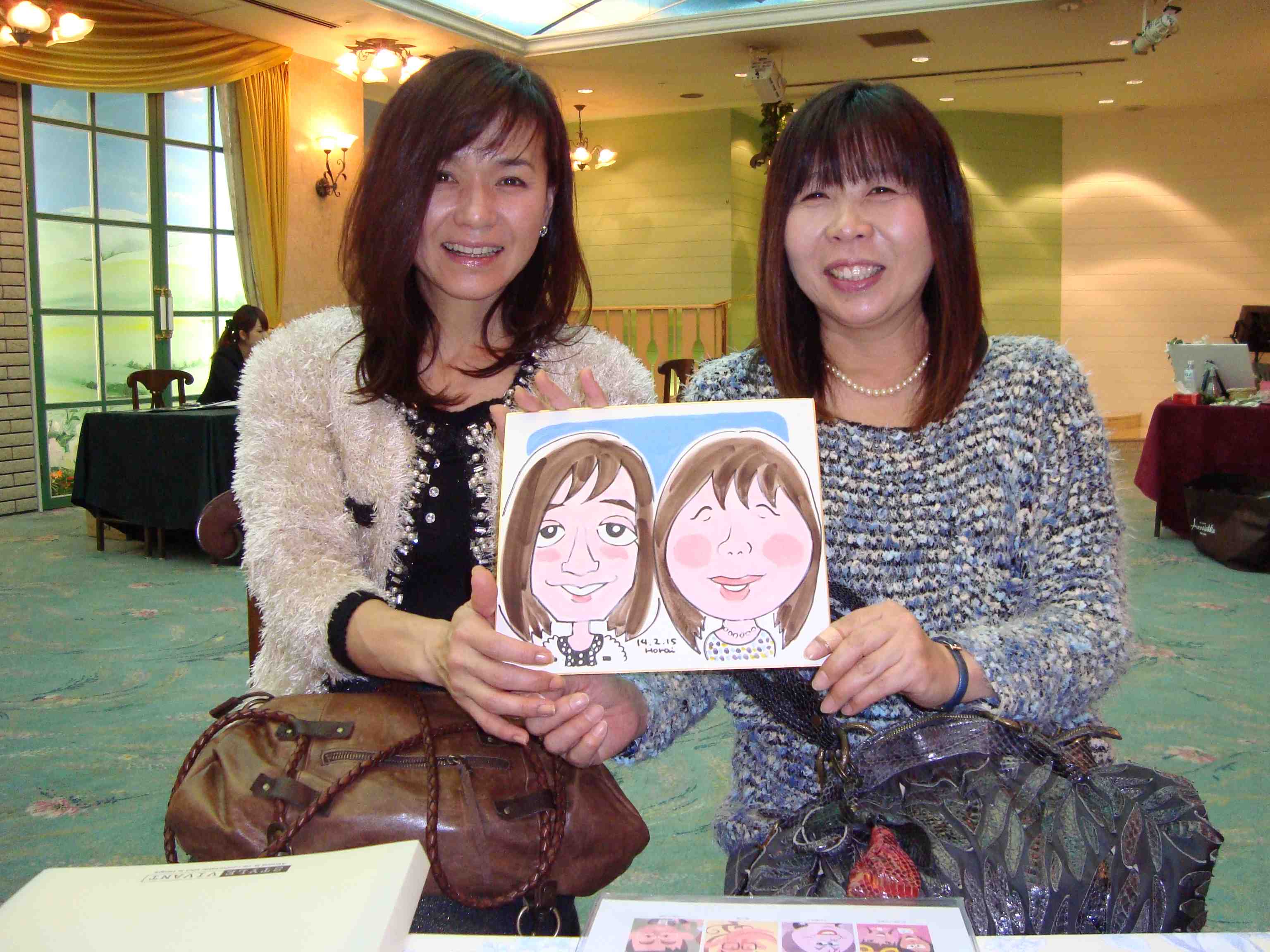 ママ友のお二人。お子さんの今後に備えて下見だそうです 彼のお店に彼女が客として知り合ったそうです。絵に合わせて目を細めてくれています 息子さんと彼女に付き添って来られたお母さん。お話好きです