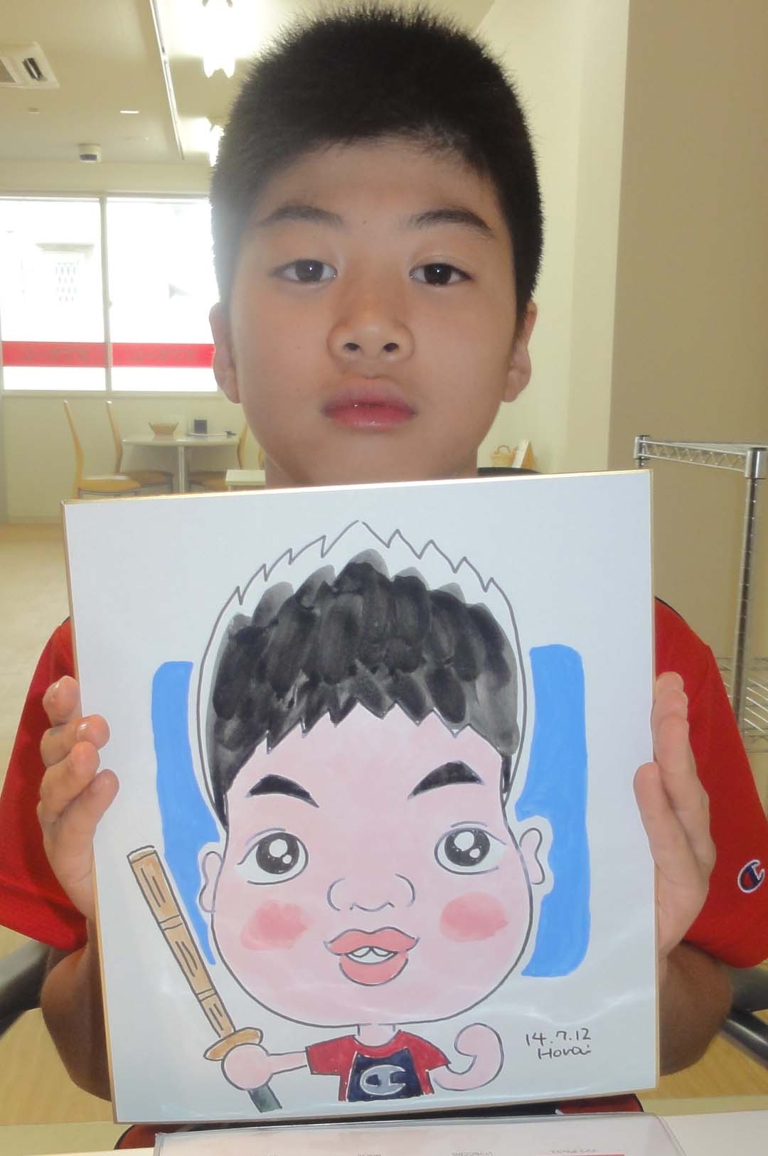 剣道をやっているという男の子 先週に引き続いてタマホームさんでの似顔絵イベント。今度は高槻支店です。何組かお客様を描かせていただきまずまずの成果でした。写真は一枚のみです。