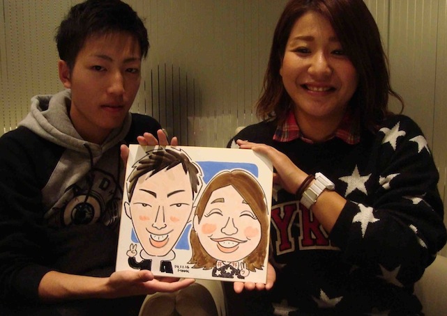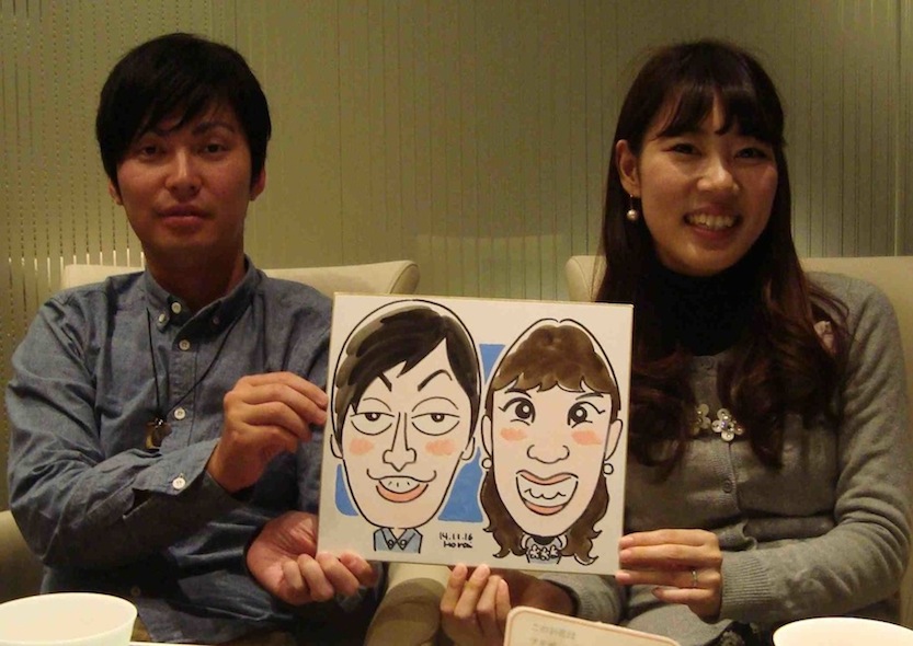 彼女の目を笑った感じにしてうまくいきました ご主人の目が特徴的。眉は整えているそうです グラン・アーモタマヒメのプチフェアに出演しました。今日は3組のカップルを描くことができました。