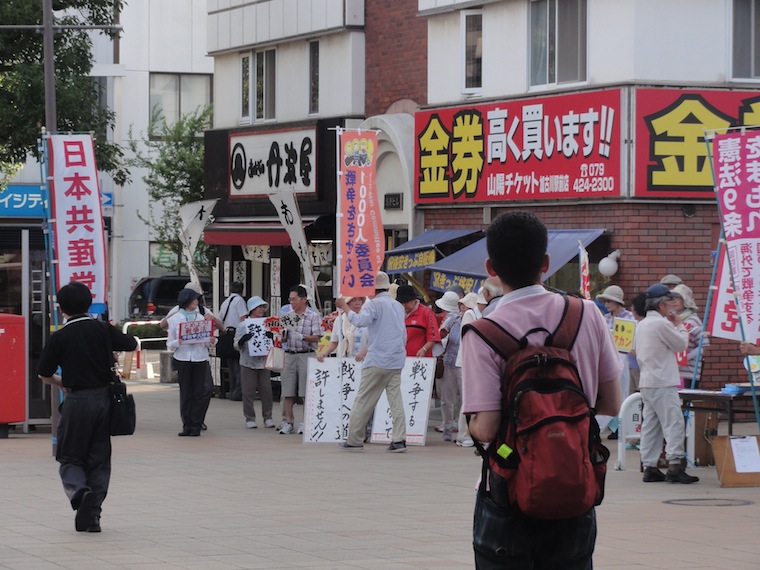 今日唯一撮影できたお客様 加古川駅前のヤマトヤシキ 駅前では強行採決への抗議も