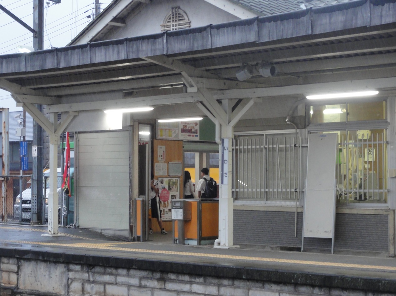 雨のJR岩出駅