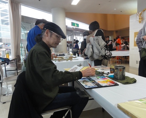 6歳のしおりちゃん 法廷画家の竹本佐治さん。超リアル似顔絵です 1ヶ月近く休眠状態でしたが久々の似顔絵イベントです。昨日、今日と堺商工会議所の刃物まつりに出店しました。描き手は3名、お客様から1000円いただいてお描きしました。結果的にはなかなか厳しい状況でしたが、このパターンの席描きが大の苦手なので想定通りとも言えます。会場内では包丁の販売や無料刃研ぎなど、開場前に大行列ができるほどの盛況ぶりでした。