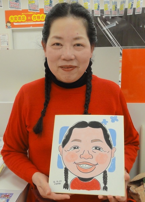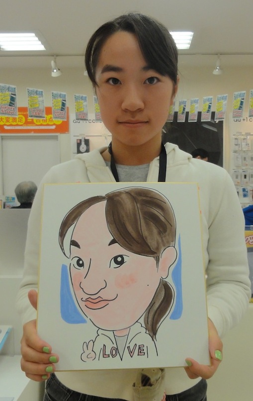 auショップ寺田町での似顔絵イベント2日めです。
