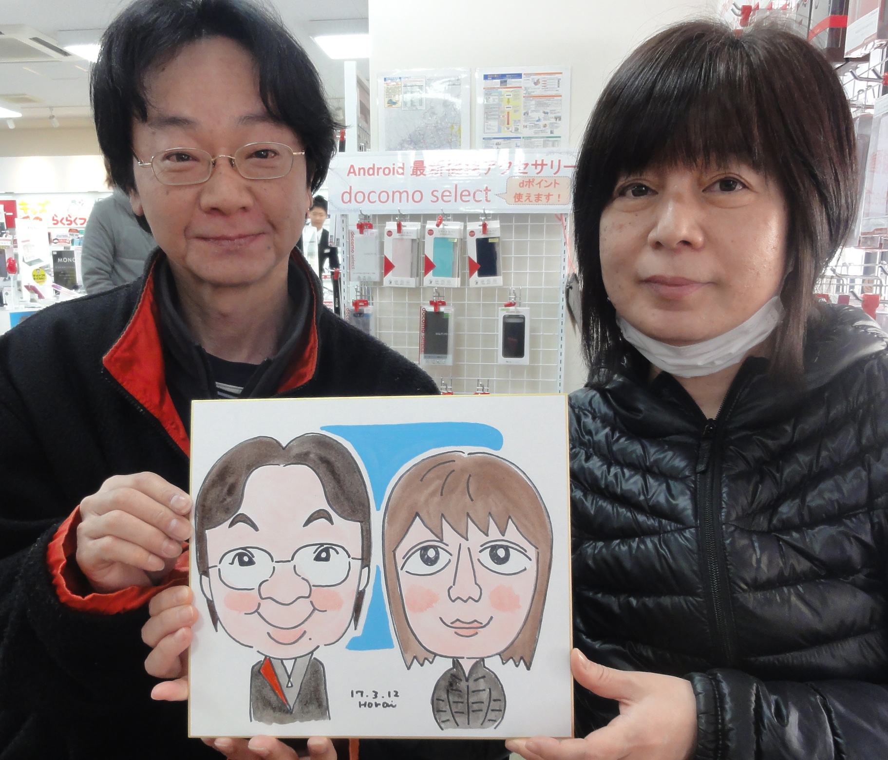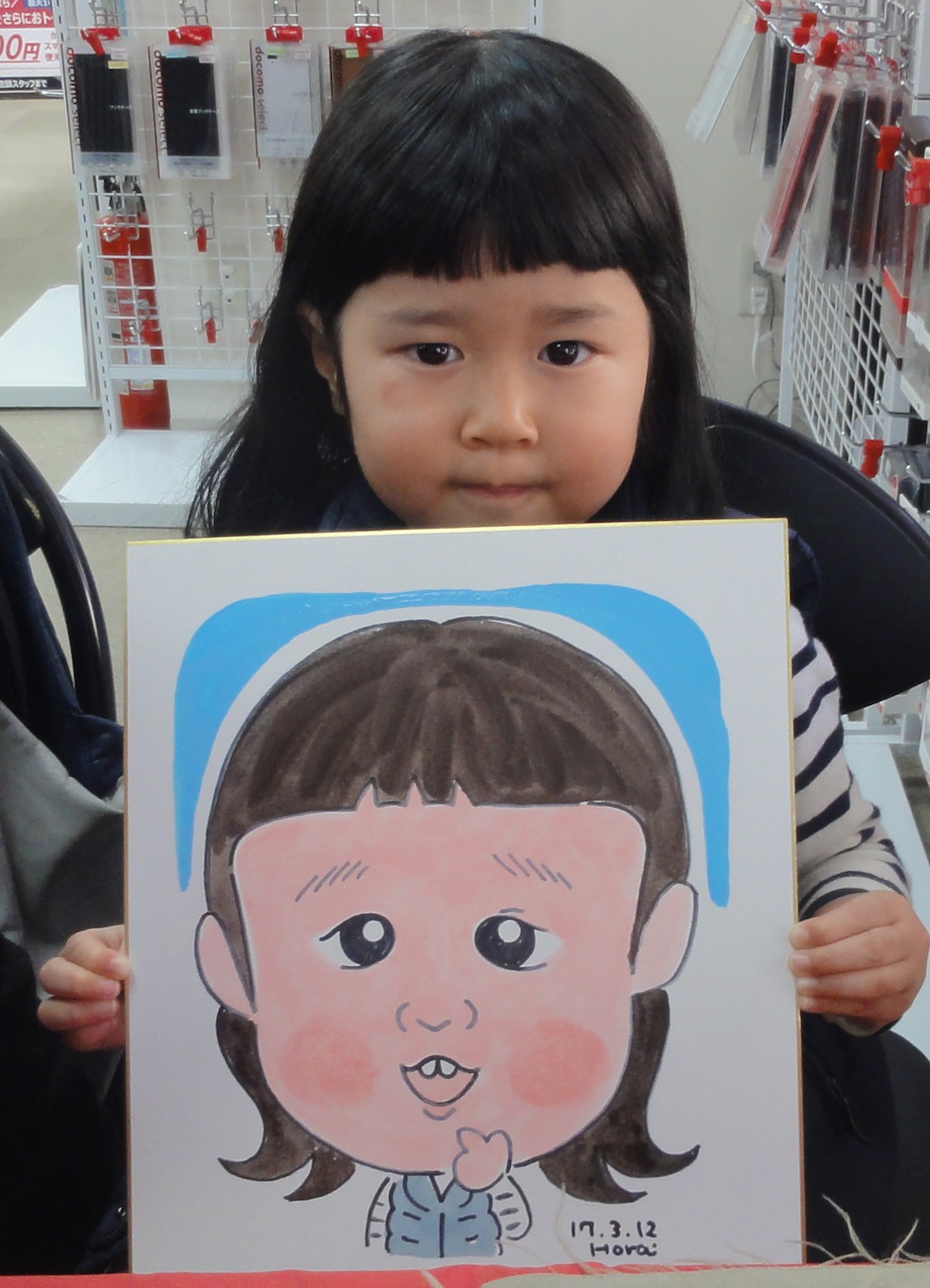 長崎と島根出身というご夫婦 もうすぐ幼稚園入園という女の子。しっかりおしゃべりしてくれました 昨日に引き続きドコモショップ王子公園店での似顔絵イベントです。お客様は3枚、6名を描くことができました。写真はありませんが、最後に描いた女の子3姉妹がすごくにぎやかでした。